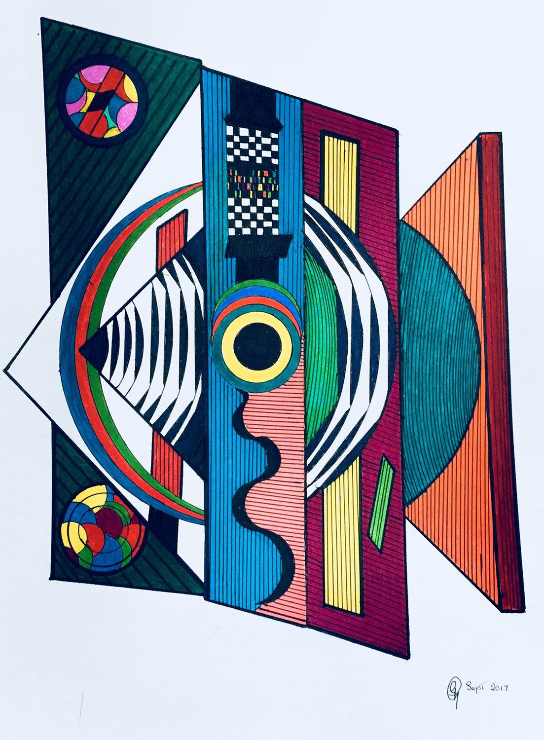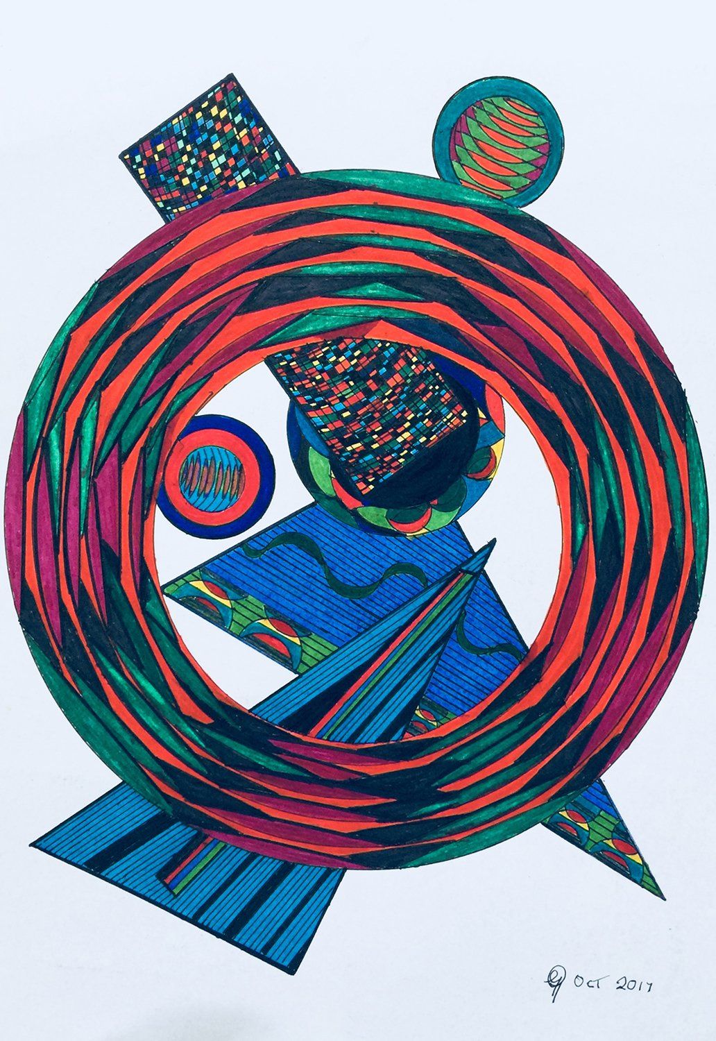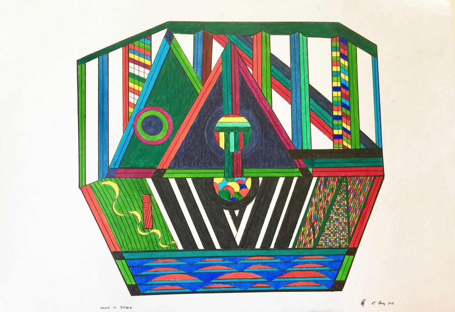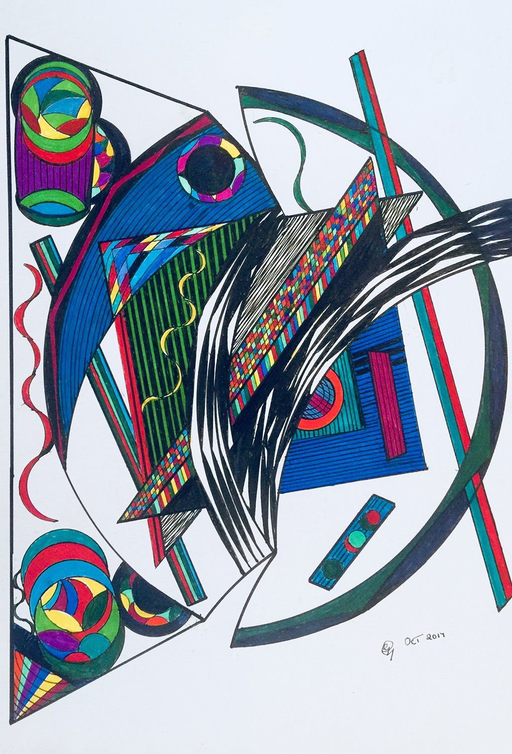 My art is an exploration into abstract figuration / spatial abstraction and pure autonomism. When thinking about an idea for a drawing in terms of the compositioning and colour I often look at Modernist Bauhaus artists like Lazslo Maholy - Nagy for inspiration. I love the use of bold colour and strong lined architectural significance in his work. My work has a slice of wry humor in some of the drawing titles.