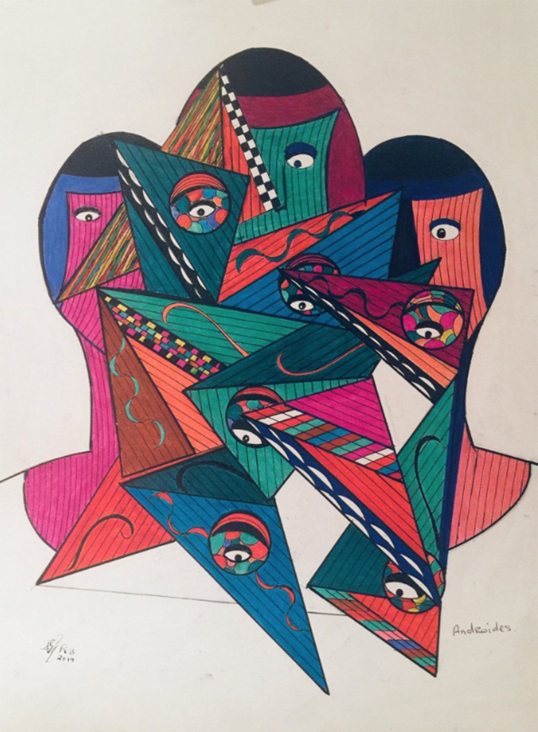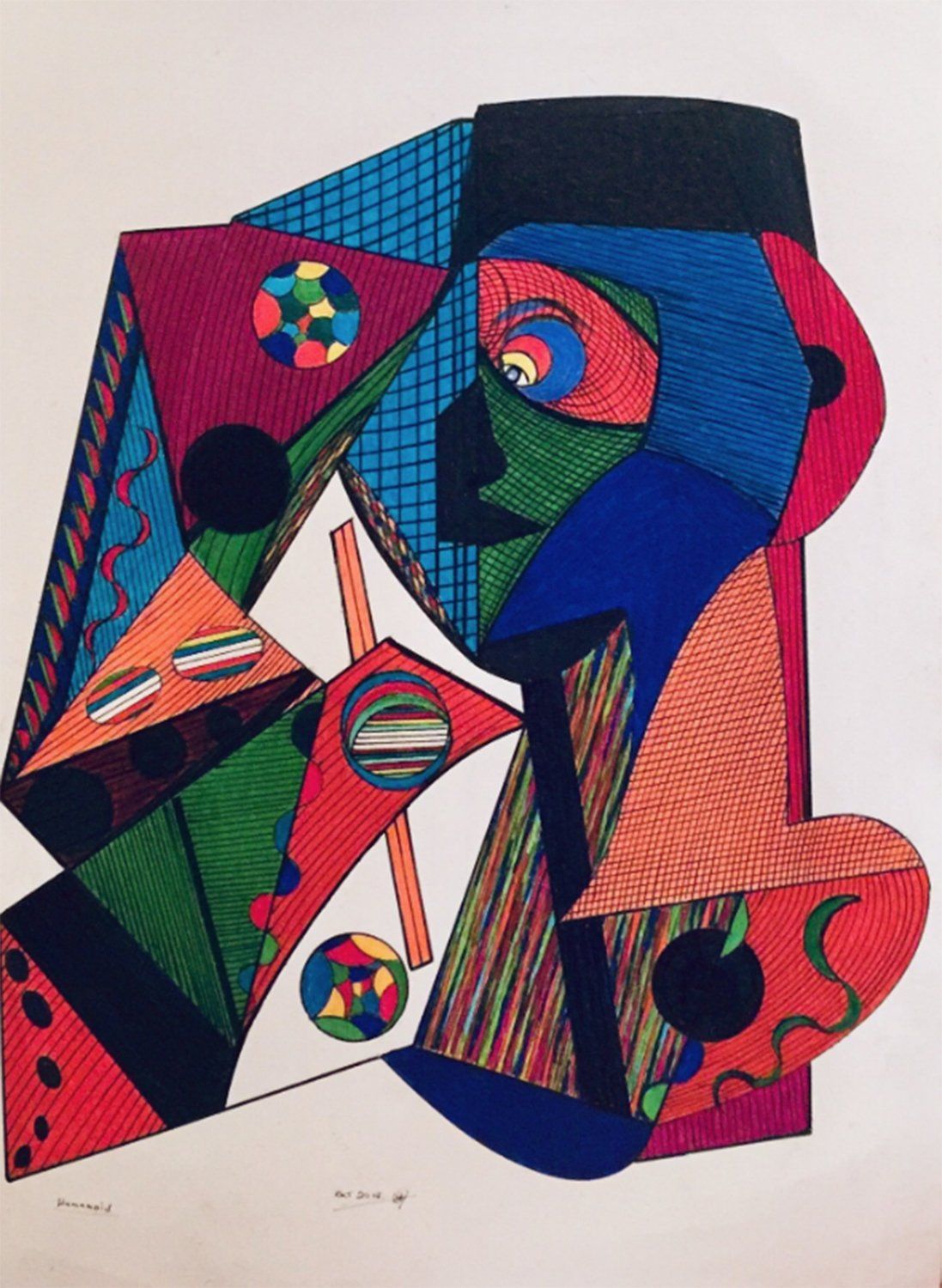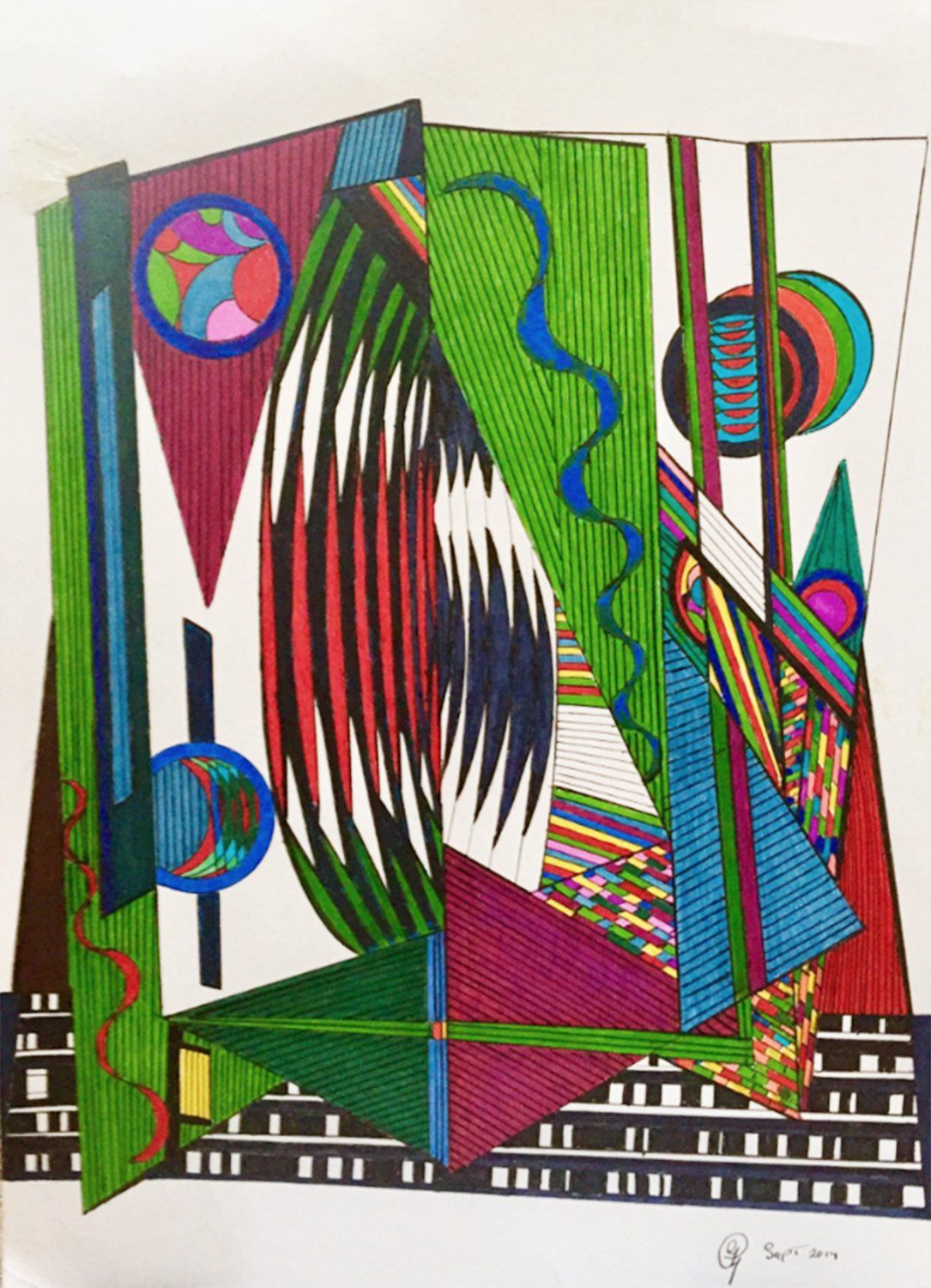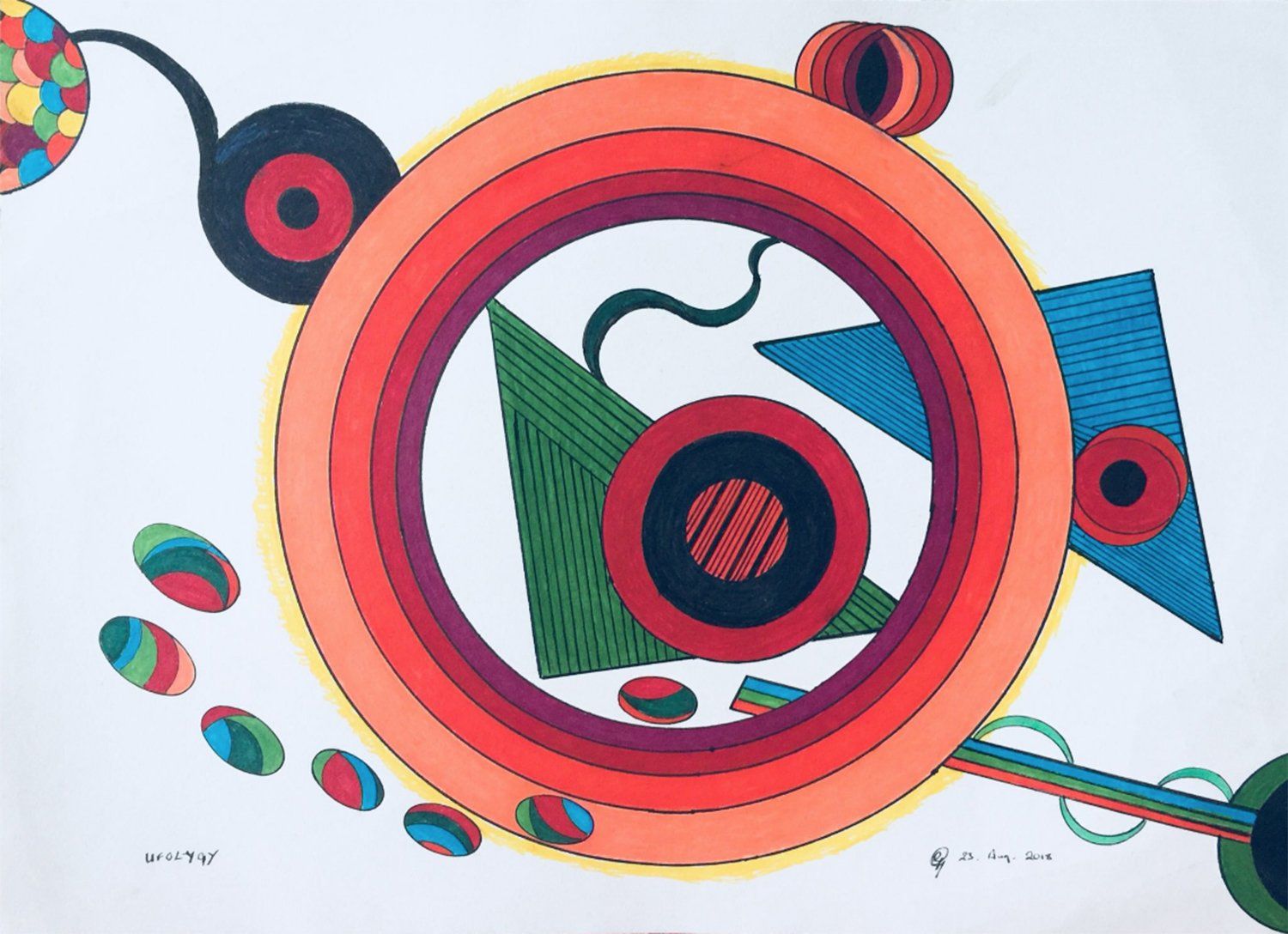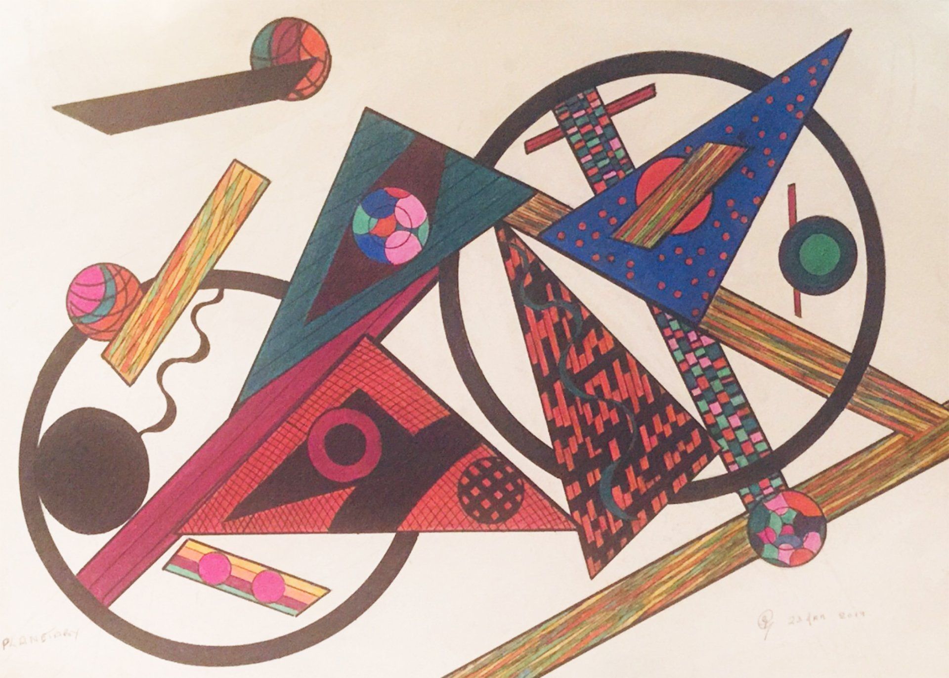 My art is an exploration into abstract figuration / spatial abstraction and pure autonomism. When thinking about an idea for a drawing in terms of the compositioning and colour I often look at Modernist Bauhaus artists like Lazslo Maholy - Nagy for inspiration. I love the use of bold colour and strong lined architectural significance in his work. My work has a slice of wry humor in some of the drawing titles.